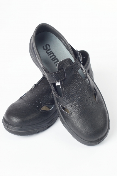 Ä€das sandales ar eļļas izturÄ«gu divslÄņu PU zoli. MetÄla aizsargplÄksne purngalÄ. Triecienu absorbÄ“jošs papÄ“dis. 3D ultrarespiro odere.