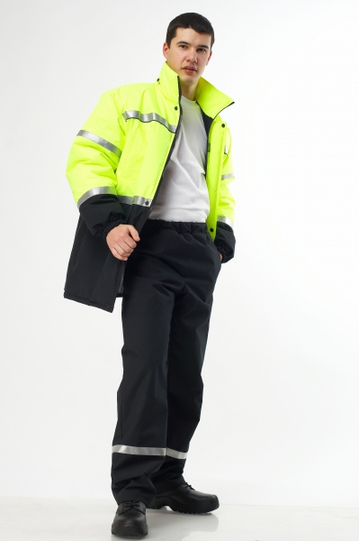 ŪdensatgrÅ«došas bikses ar gumiju jostasvietā no ādai patÄ«kama auduma ar oderi un gaismu atstarojošÄm lentÄ“m.